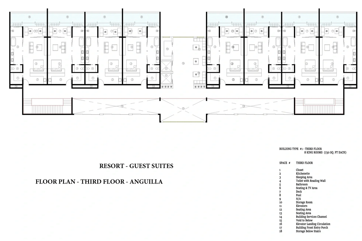 {Building 1 of 17} This building contains single-bay suites. Larger accommodations with 2, 3, and 4-bay suites are also available. Additionally, luxury 3-level villas with 2, 3, 4, and 5 bedrooms are available to enjoy for your stay. Villas included private gym, theatre room, infinity pool and more - located right on the beach!